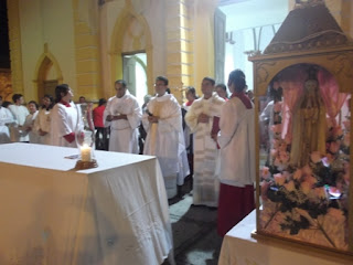 Ao chegar na Matriz aconteceu a Celebração solene de Encerramento presidida pelo Pároco de Nova Cruz e Vigário Geral da Arquidiocese de Natal, Padre Edilson Nobre e concelebrada pelo Padre Janilson Macedo e pelo Diácono Jeová Santos.
